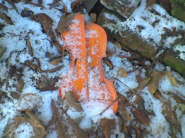 Violin in winter Posted bydavidmbirchallJanuary 3, 2010Posted inUncategorizedTags:David Birchall, david m birchall, manchester, snow cracked violin, violin sculpture, whalley range, winter, woodlawn court The last few weeks of snow have taken there toil on the garden violin… Share this: Click to share on Facebook (Opens in new window) Facebook Click to share on X (Opens in new window) X Like Loading... Related