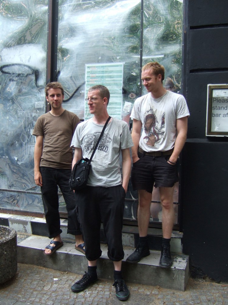 This is us outside the venue in Berlin. Had a great 2 weeks in UK, France, Germany, Switzerland, Austria and Holland in June. See many more moments of boy bandesque pain and beauty on Huws blogspot here. Hopefully there’ll be some audio and the infamous ‘tour diary’ appearing at some point.