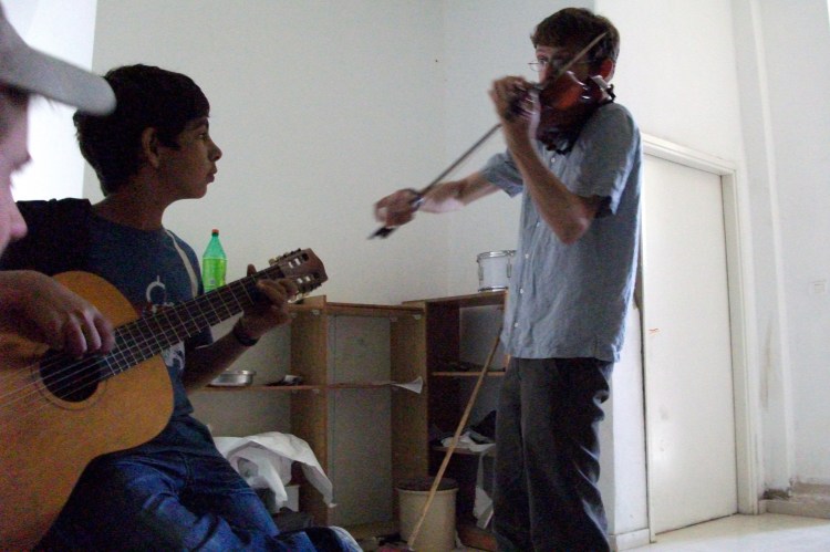 The first was in the summer of 2010 when Helen and I were visiting Nick in Ramallah and he took us to visit the Jalazone refugee camp on the outskirts of Ramallah where he teaches the violin to Palestinian youngsters with Al Kamandjati.