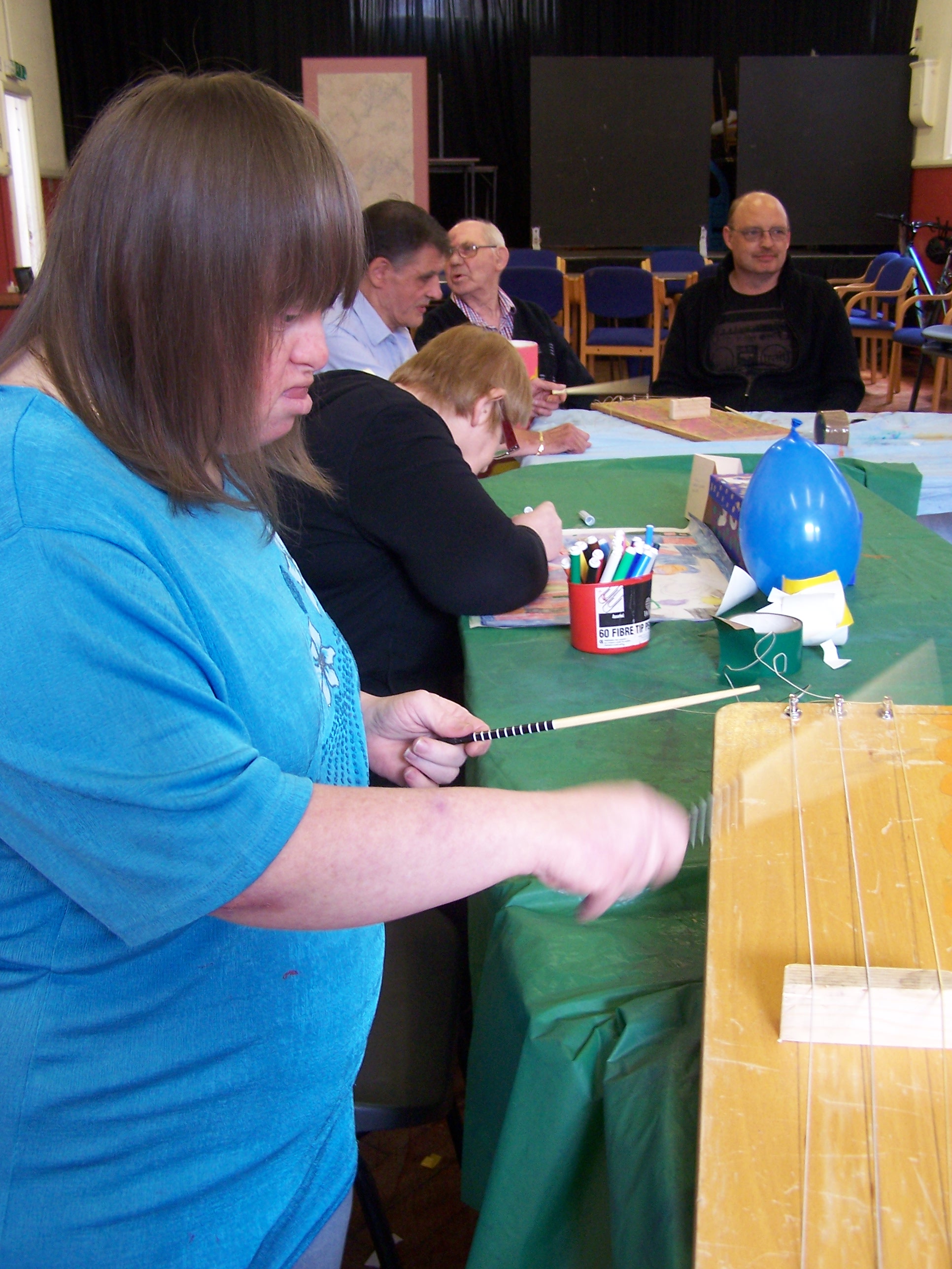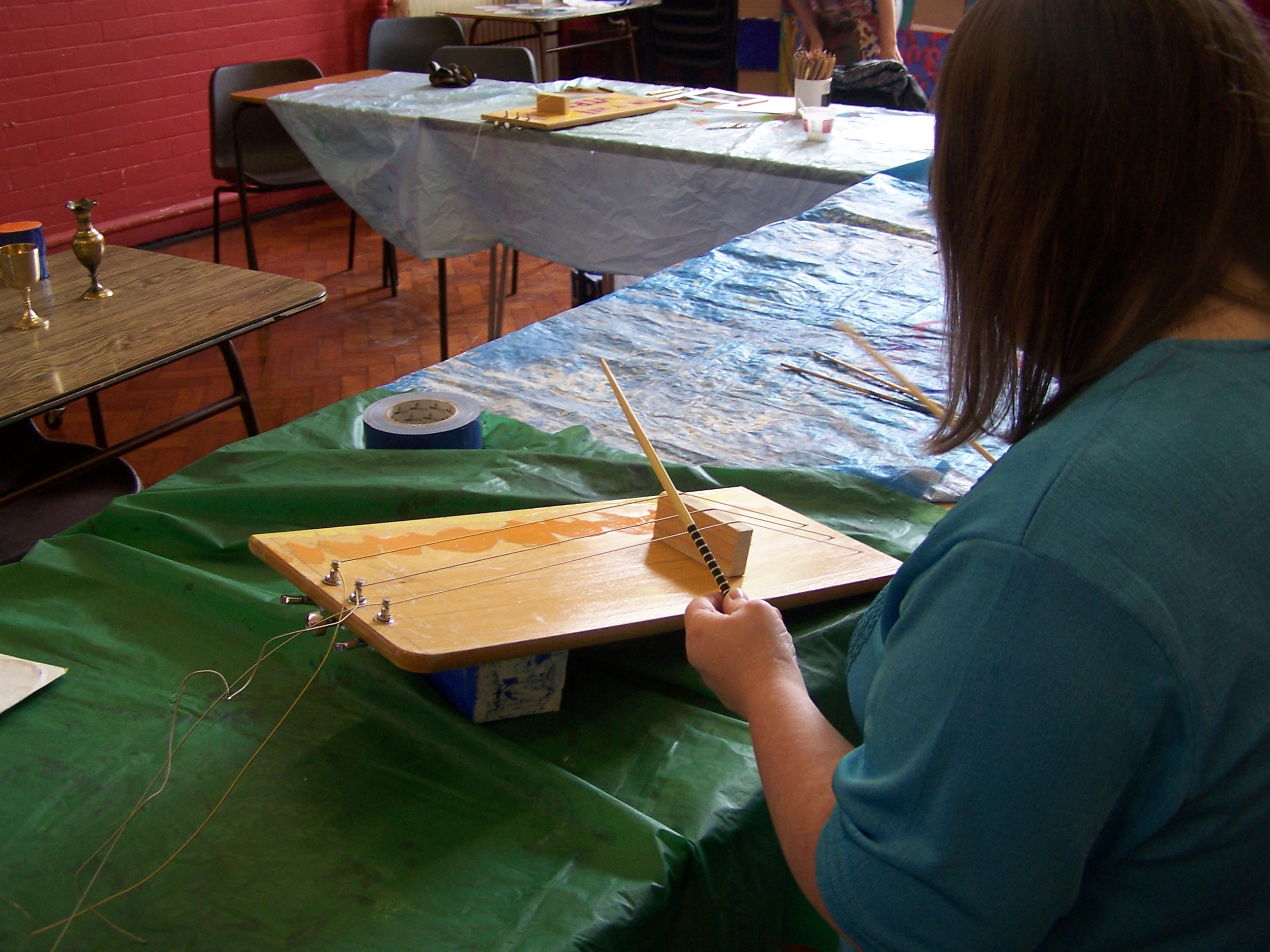 In June & July of 2011 I worked with a group of adult learners who attend a weekly group called Art to Life. We built a series of string, percussion and wind instruments from found and reclaimed materials according to several basic designs I had made prototypes for. We then had several music making and recording sessions to capture the instruments in action and the sounds were used in the soundtrack to an animation the group were working on.