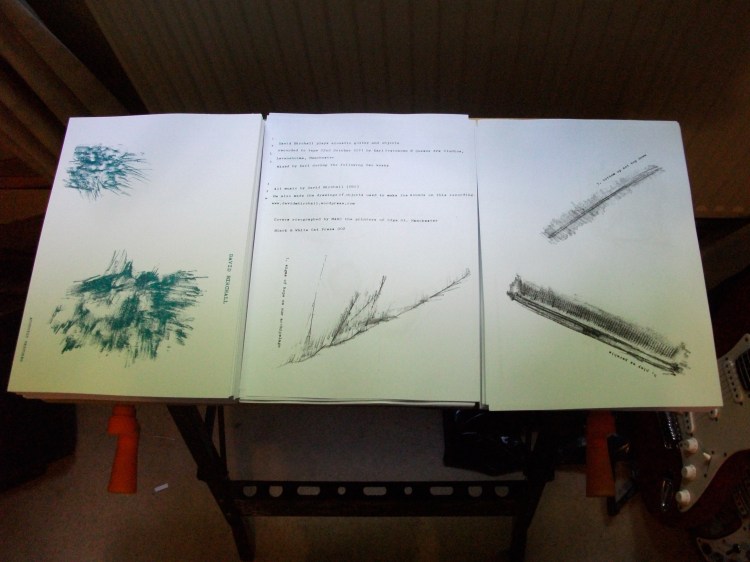 Beavering away in the studio today folding and stapling covers and the insides for a mini zine that will house the first physical solo release I’ve put together.