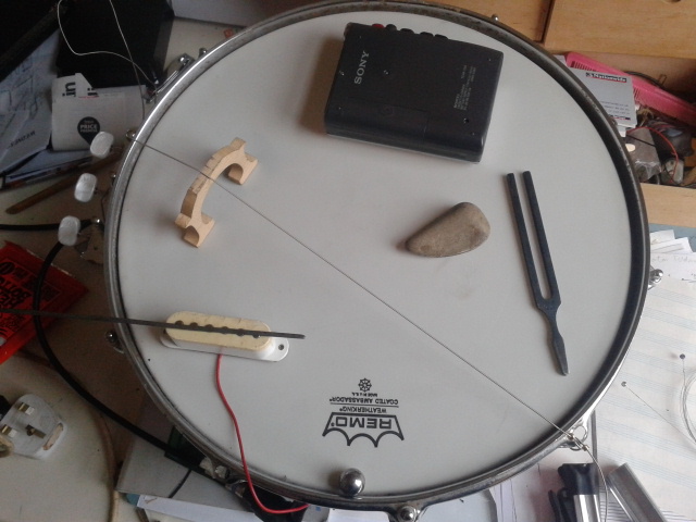 Began work a few months ago putting together a very loose assemblage of parts that maintains the structural features of electric guitar while amplifying the possibilities I find most interesting on the instrument further. Namely; the ability to amplify and make microphonic large surface and the ability to pinpoint on pickup sounds.